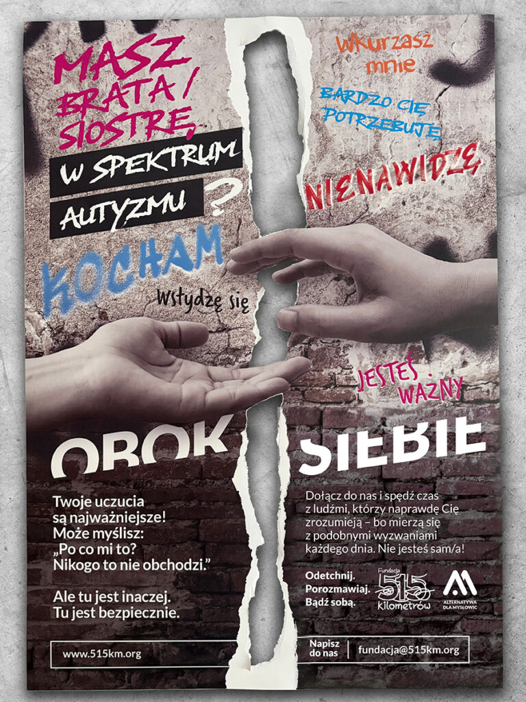 W Fundacji 515 Kilometrów dostrzegamy tę ważną kwestię. Dlatego z dumą tworzymy program grup wsparcia dedykowanych rodzeństwu osób z autyzmem. Chcemy stworzyć przestrzeń, w której ich głos zostanie usłyszany, a ich potrzeby – zauważone.